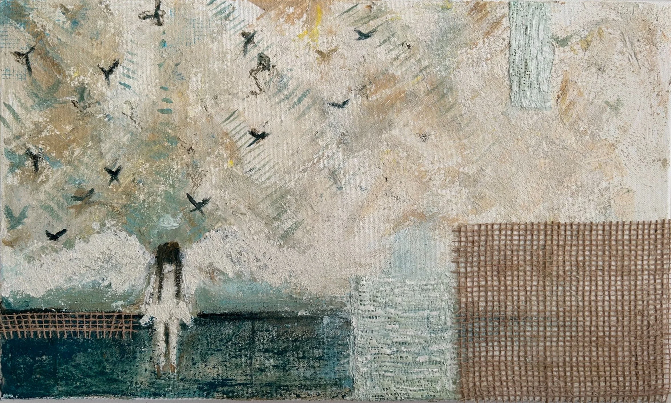 She gets inspired by nature and people, life in general. She loves to work more expressive and searches for new ways to add structure in her work.